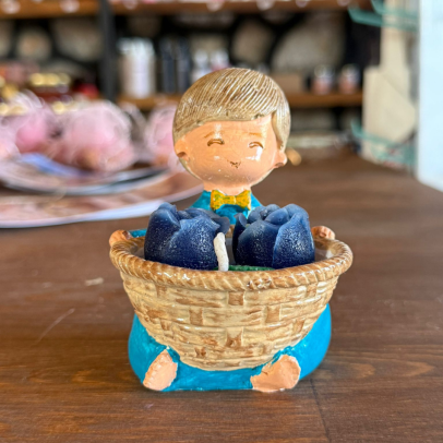 El Yapımı Mavi Gül Mumlu Sepetli Erkek Çocuk Biblo | Sagalassos Kadın Kooperatifi