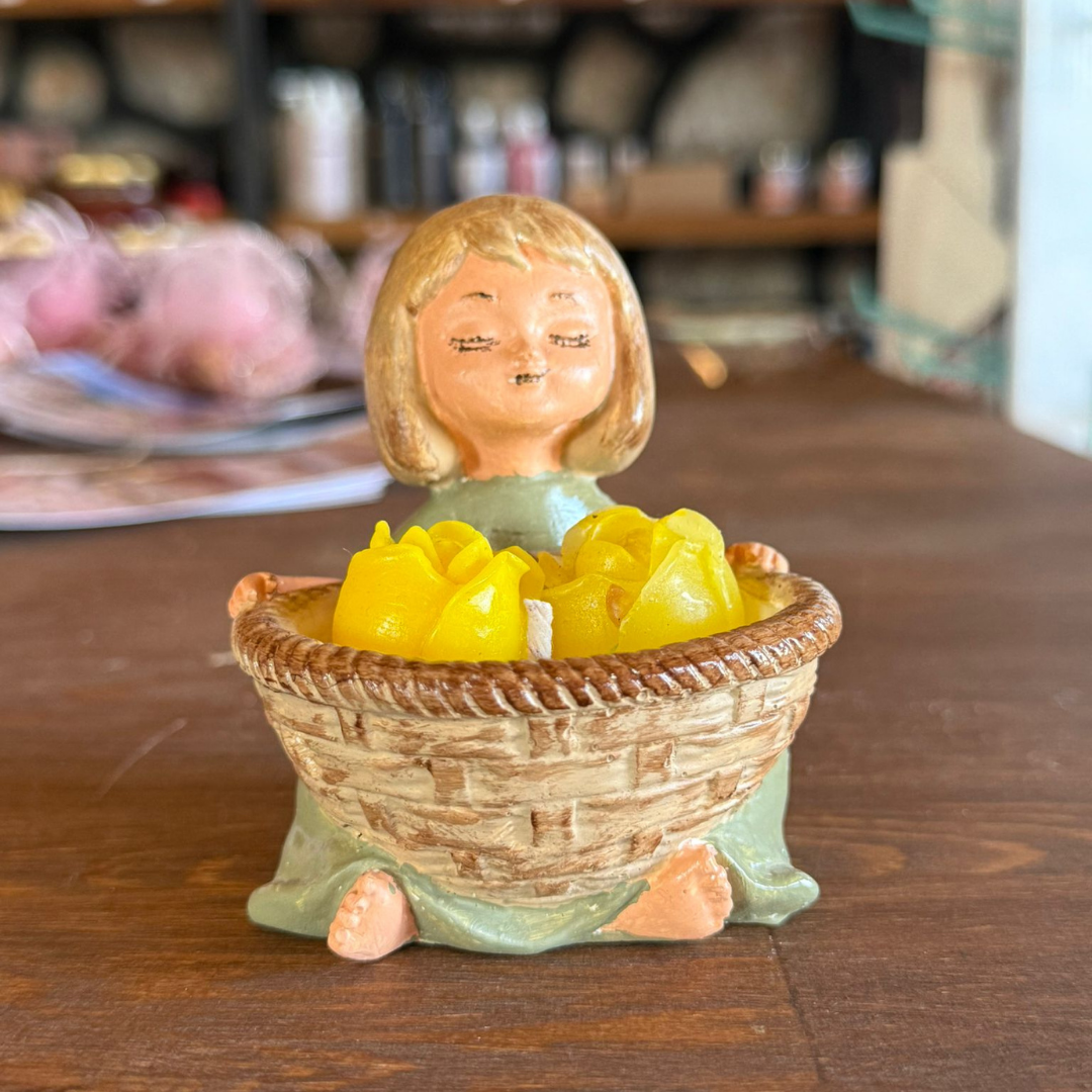 El Yapımı Sarı Gül Mumlu Sepetli Kız Biblo | Sagalassos Kadın Kooperatifi